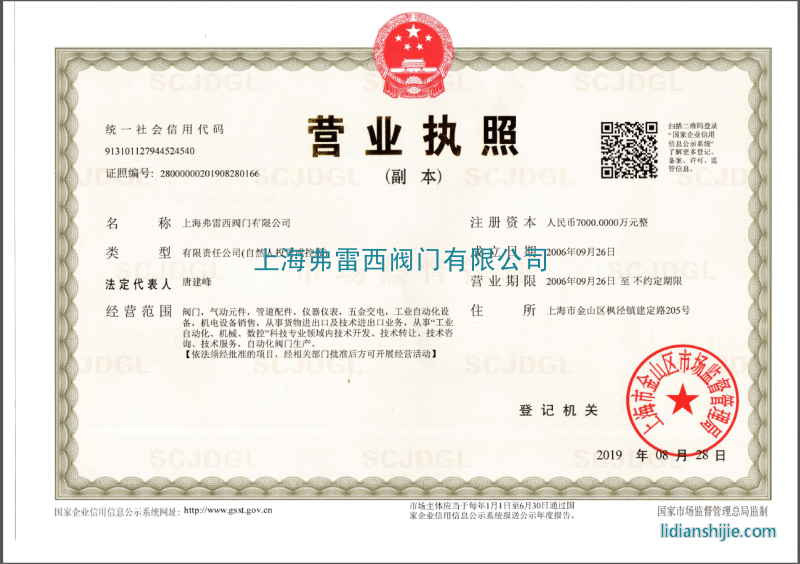 | 發(fā)證機構 | 上海市金山區(qū)市場監(jiān)督管理局 | 發(fā)證時間 | 2019-08-28 |