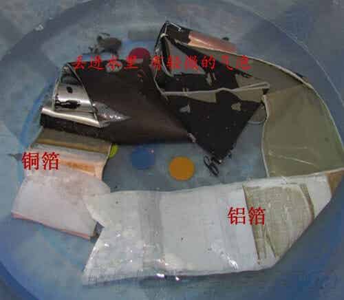 最后特寫一下電芯內部的材料。圖中的銅箔,是用來涂布LiNi-Co-MnO2鎳鈷錳正極材料,反之,鋁箔是用來涂布石墨烯。電芯的容量,是根據這些配方的調配比例得來。模仿有風險,拆解需謹慎。