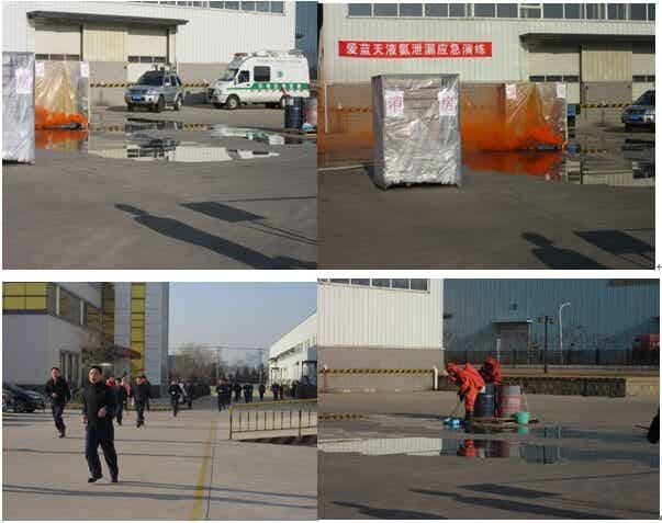 2016年12月16日上午,我公司與市環(huán)保局大孤山半島分局聯(lián)合舉行液氨泄漏應(yīng)急演練。在我公司廠院內(nèi),參演隊(duì)伍模擬了險(xiǎn)情突發(fā)、啟動(dòng)公司三級(jí)生產(chǎn)安全事故應(yīng)急預(yù)案、噴淋稀釋、人員疏散、員工穿防化服搶修、上報(bào)相關(guān)部門和單位、聯(lián)絡(luò)外部協(xié)助、收集廢液、防化服洗消、環(huán)保監(jiān)測(cè)評(píng)估等細(xì)節(jié)。演練獲得圓滿成功,受到環(huán)保局的贊賞。