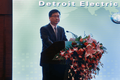 簽約儀式上,宜興市委常委、環科園管委會主任朱旭峰,底特律電動汽車董事長林秀山,遠東控股集團投資人、黨委副書記、遠東智慧能源董事長蔣承志分別代表三方簽約。合資公司落戶中國宜興環科園,投資總額為18億美元,注冊資金為60,000萬美元,其中智慧能源出資24,000萬美元,占股40%。預計2017年動工建設,2018年獲得電動汽車整車的生產資質并開始銷售OEM產品,2019年第一輛自主生產的汽車下線。項目擬規劃至2020年,實現整車產能5萬輛;至2021年,新能源汽車累計銷量規模達到10萬輛;至2030年,產銷規模要達到100萬輛。