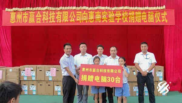 6月27日, 盡管驕陽似火,但是在惠南實驗學校里吹起了一股充滿愛心的清風。惠南高新技術產業園管委會、惠州市贏合科技有限公司在此舉行電腦捐贈儀式,管委會領導及公司副總裁王振東、總裁辦主任柳小舟等受董事長王維東先生的委托共同出席了儀式。