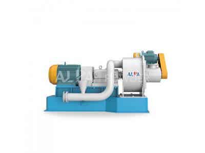 物料由加料系統均勻的送入粉碎室,受到高速旋轉的粉碎盤的強烈沖擊,同時受到離心力的作用,與粉碎齒圈發生碰撞,受到剪切、摩擦、碰撞等多種綜合力的作用,使物料粉碎,被粉碎的物料隨氣流運動到分級區,通過變頻調節的分級輪,對粗細物料進行分離,符合細度要求的產品隨氣流進入旋風收集器和除塵器收集,粗細料返回分級區二級粉碎。