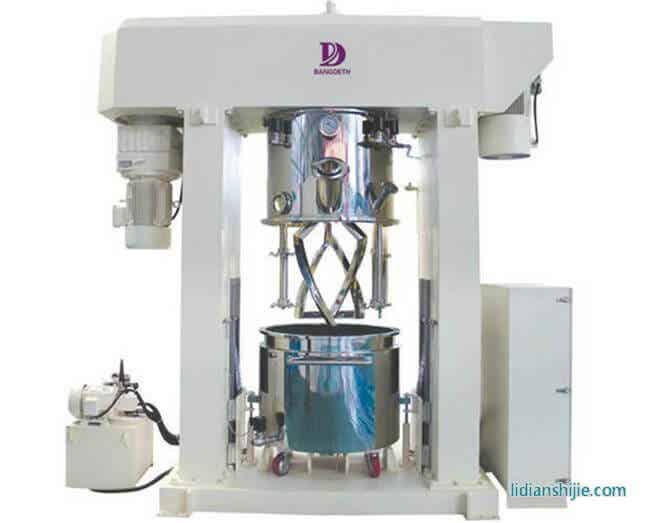 1:行星攪拌機適用于化工、輕工、食品、電池、制藥、建材、農藥等行業所需的多組分固-固相、固-液相、液-液相物料的混合、反應、分散、溶解、調質等工藝,如有機硅酮密封膠(中性膠)、聚氨脂密封膠、模具膠、電極槳料、油墨,顏料,粘膠劑,密封膠,罐裝膠軟膏,糊狀物料,潤滑脂,油漆,膏狀化妝品,膏狀食品,添加物等多種高粘稠物的制備。適用年度范圍100000cp-1000000cp左右。攪拌器的形式,根據物料要求可為多層槳葉式、框式、蝴蝶式、折葉式或雙麻花槳攪拌等。