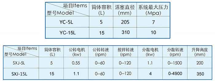 主要技術(shù)參數(shù):行星攪拌技術(shù)參數(shù)