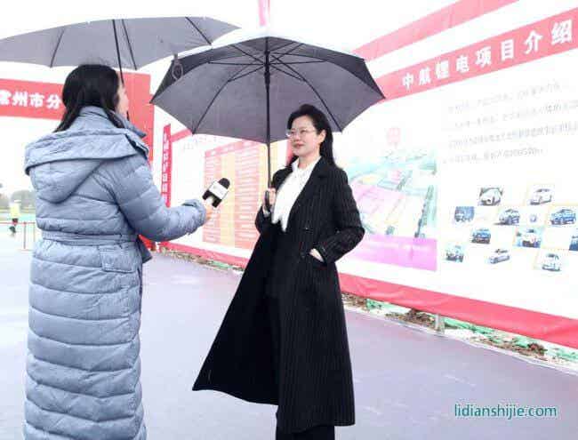 中航鋰電董事長劉靜瑜在開工現場講話。