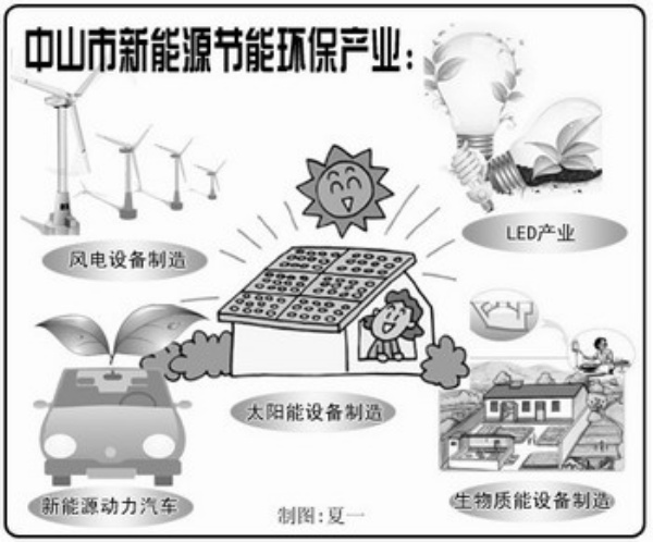 “中山市把新能源產業作為新興產業發展主攻方向和產業轉型升級的突破口,設立1億元新能源扶持資金,重點發展風電裝備、LED照明、新能源汽車動力和控制系統、太陽能設備、生物質能設備制造等產業?!瘪T煜榮告訴記者。