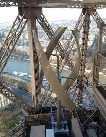 但是它們不像埃菲爾鐵塔外部的燈飾那樣顯眼,渦輪機的位置并不引人注意。它們距地面400英尺(約122米)高,完美地與鐵塔的材質結構相結合,在高處默默運行。但是千萬別小瞧了這些隱藏起來的機器。UGE表示,這種強大的垂直軸渦輪機可以利用任何風向的風能。