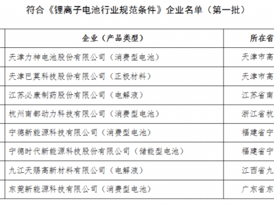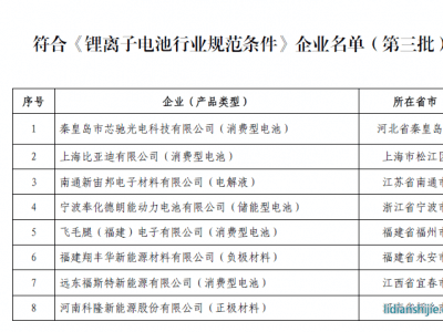 符合《鋰離子電池行業規范條件》企業名單(第四批)公告