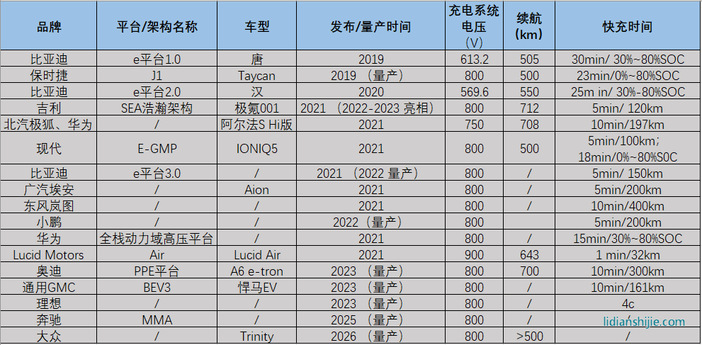 ▲ 部分車企800V平臺(tái)情況