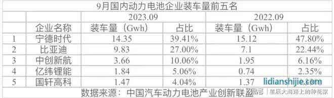 ▲寧德時代2023年9月市場份額直線下滑。