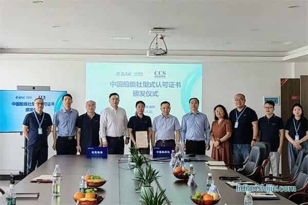 5月22日的型式認可證書頒發儀式上,中國船級社武漢分社副總經理杜海根、產品處處長賈思慶、高級工程師朱東華共同為比克電池頒發了證書。撫州比克電池有限公司總經理李艷斌表示:“獲得中國船級社型式認可證書是對我們技術創新能力和產品品質的高度認可。比克一直致力于通過先進的電池技術促進全球能源轉型與升級。此次認證將加速我們的產品在航運業的應用步伐,助力客戶實現更高效、更環保的運營模式,為推動綠色船舶技術創新應用,助力中國航運業高質量發展貢獻己力。”