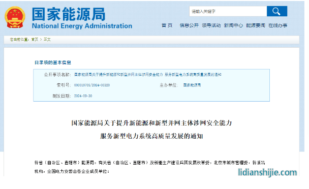 國(guó)家能源局關(guān)于提升新能源和新型并網(wǎng)主體涉網(wǎng)安全能力