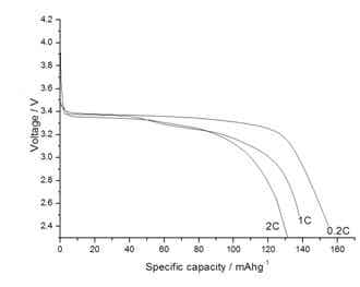 Fig 5 the initial discharge profiles of LiFePO4/C composite materials prepared at 700℃ at different rates