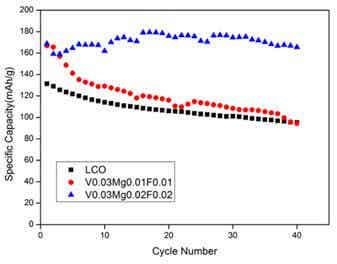 LiCo0.95Mg0.02V0.03O1.98F0.02
