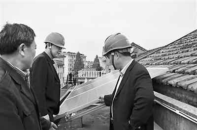 作為建德市首個(gè)個(gè)人分布式電網(wǎng)并網(wǎng)項(xiàng)目,國(guó)網(wǎng)建德市供電公司對(duì)用戶給予了積極支持,專門開(kāi)辟綠色通道,實(shí)行一對(duì)一全程服務(wù),加強(qiáng)跟蹤服務(wù),優(yōu)化并網(wǎng)流程。圖為建德市供電公司工作人員在用戶家樓頂光伏太陽(yáng)能板前查看。