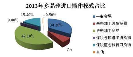 業(yè)內(nèi)人士稱,因?qū)n國最大的多晶硅企業(yè)OCI僅征稅2.4%,可以說多晶硅“雙反”主要針對(duì)美國。但美國通過加工貿(mào)易的方式有效規(guī)避征稅,2013年通過進(jìn)料加工貿(mào)易的方式進(jìn)口多晶硅的比例增加至42.1%,一般貿(mào)易方式占比從2012年的50%左右減少至2013年的34.2%(如下圖)。