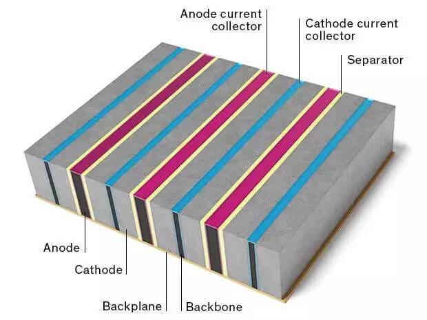 該電池使用了更好的隔膜。在傳統(tǒng)的鋰電池中,隔膜通常由塑料或高分子材料制成,因為隔膜材料必須具有足夠的柔性,便于卷起。然而,塑料和隔膜在高溫下容易失效。然而這種平面設計允許電池采用陶瓷作為隔膜,增加了耐熱性,降低了失效的風險。
