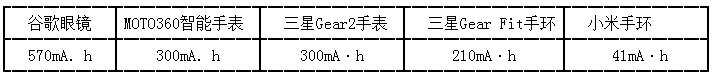 調(diào)研機(jī)構(gòu)Canalys給出的數(shù)據(jù)顯示:2013年下半年,全球有160萬(wàn)臺(tái)健康腕帶和智能手表出售。中國(guó)IT研究中心(CNIT-Research)預(yù)計(jì)可穿戴設(shè)備2014年全球銷量總額將同比增長(zhǎng)350%至2270萬(wàn)臺(tái),2017年銷量將突破1億臺(tái),產(chǎn)品還是集中在健康腕帶和智能手表兩類。隨著可穿戴設(shè)備的流行和產(chǎn)品市場(chǎng)的深入,很多電池廠家也隨著市場(chǎng)的需要開(kāi)發(fā)出了穿戴設(shè)備使用的鋰離子電池。考慮到電池重量要輕、體積要小、安全性要高及電池形狀和尺寸設(shè)計(jì)方面的問(wèn)題,智能珂穿戴設(shè)備用鋰離子電池主要以聚合物鋰電池為主。以目前市場(chǎng)上流行的幾款只能可穿戴產(chǎn)品為例。