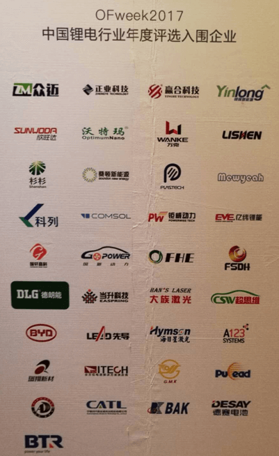2017年11月13日晚,“OFweek財富之夜”歡迎晚宴2017中國高科技產業年度評選暨中國鋰電行業頒獎晚會在深圳大中華喜來登大酒店隆重舉行,四川富驊新能源科技有限公司總經理劉一町及技術總監劉興泉教授出席了此次頒獎盛典。在此次評選中,四川富驊新能源科技有限公司獲得“中國鋰電行業材料創新產品獎”這一殊榮,公司技術總監劉興泉教授作為代表上臺領獎。