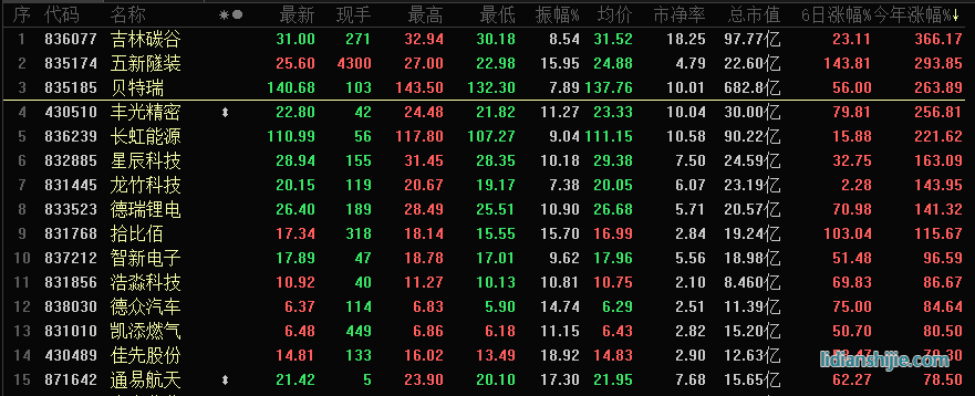 自北交所設立消息發(fā)布后,新三板精選層個股全線大漲,甚至出現(xiàn)了一家市值超500億的公司——貝特瑞(NQ:835185),截至9月17號收盤,貝特瑞總市值達722億元。