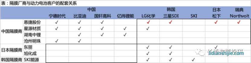 1、行業(yè)集中度最高,國內(nèi)CR3約80%,CR5則超90%,其中恩捷股份以45%左右的市占率占第一的寶座,客戶方面則不僅綁定了國內(nèi)的寧德時代、比亞迪、國軒高科,還綁定了LG化學(xué)(為期5年的濕法隔膜訂單)、松下、三星等海外動力電池龍頭;