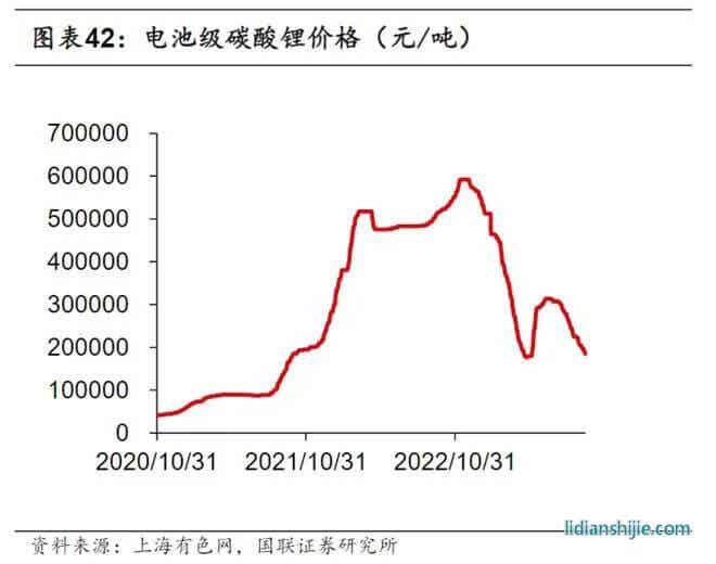 2022年碳酸鋰的價格還飆升至50萬元/噸,今年的4月份跌至20萬元/噸以下,鋰離子電池產業鏈價格大幅回落。