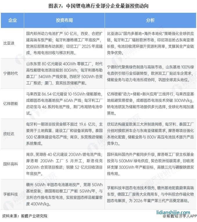 鋰電池行業(yè)代表性上市企業(yè)最新投資布局