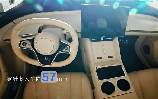 而此次更是在戶外進(jìn)行,風(fēng)速5級(jí),增大了穿刺后的失火風(fēng)險(xiǎn),直徑6mm的鋼針刺入車體57mm后誘發(fā)電芯內(nèi)反應(yīng),穿刺口出現(xiàn)了冒煙。