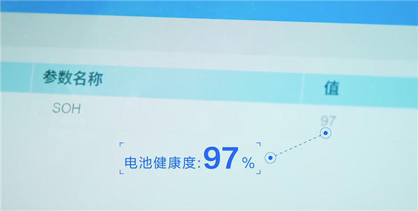 經(jīng)電腦檢測(cè),電池包健康度仍高達(dá)97%,遠(yuǎn)超行業(yè)75.6%-89.3%的平均水平。