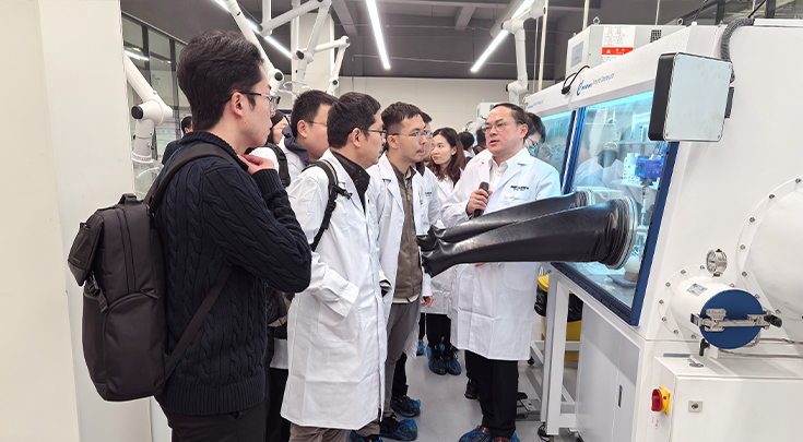 會議結(jié)束后,投資者一行首先前往華盛鋰電,實地考察硫化鋰中試生產(chǎn)線,總部研究院院長張先林就公司目前研發(fā)團隊和研發(fā)設(shè)備情況進行簡要介紹。