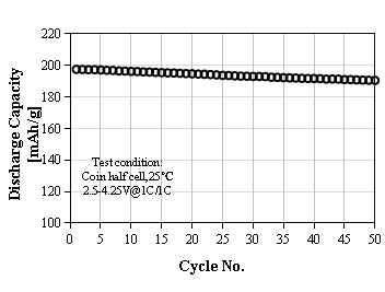 L-8950產(chǎn)品特點(diǎn):大小多晶混合二次球,高容量,長(zhǎng)循環(huán)