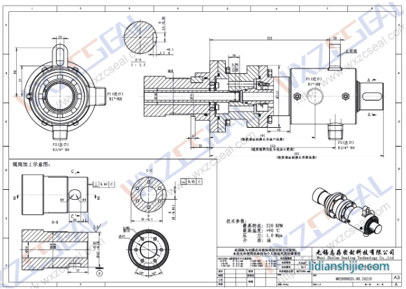 志存密封根據某德時代注液設備定制的油用旋轉接頭,產品系列分為DN20,DN25,DN32。