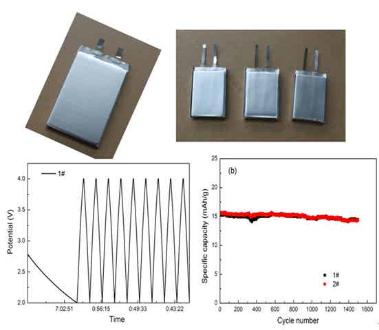 研制出的鋰離子電容器器件及其充放電和循環壽命曲線