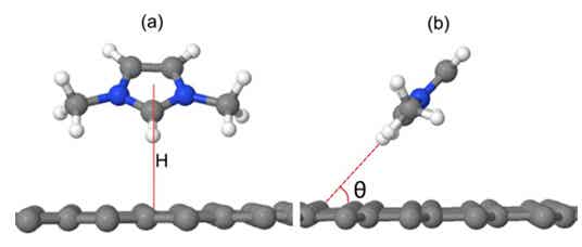 圖3. 離子液體陽離子在石墨層表面的優化物理吸附結構