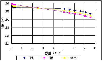 3)充放電特性的互補。圖2是混合電池系統和兩種蓄電池的充電曲線。鋰離子電池充電接受能力優于閥控鉛酸蓄電池,而且充電末期電流很小。這樣在兩種蓄電池構成的串聯混合電池系統中,鋰離子電池自然成了使閥控鉛酸蓄電池基本充滿而處于部分菏電狀態的設施。圖3是混合電池系統和兩種蓄電池的放電曲線。從圖可見:初期閥控鉛酸蓄電池的電壓高于鋰離子電池;后期離子電池的電壓高于閥控鉛酸蓄電池;混合電池系統的放電電壓介于兩者之間,兩者起到互補作用。