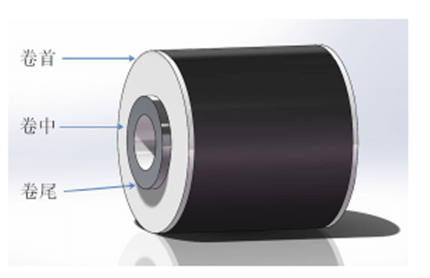 以上為磷酸鐵鋰體系電池干燥后水分值統計,通過數據對比發現極卷干燥的水分值最低,接觸式干燥比非接觸式干燥的效果更好,但是對于工業生產二者都可以滿足工藝要求(一般磷酸鐵鋰體系水分值低于500ppm 即可),因此目前很多廠家采用非接觸式真空干燥設備。極卷干燥相比于其他兩種方式,水分值最低,但是極卷干燥測試水分只能在卷首取樣,且極卷干燥的水分值不均勻,主要表現為水分值大小依次為卷中>卷首>卷尾(極卷最內側)如圖: